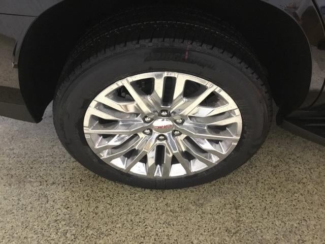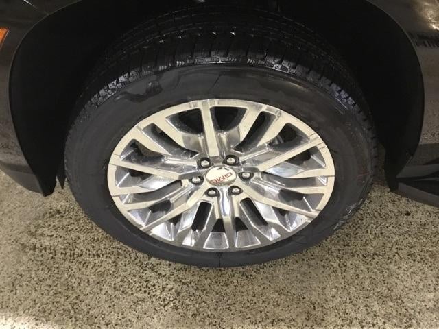 10 Speakers, 3.23 Rear Axle Ratio, 3rd row seats: split-bench, 4-Wheel Disc Brakes, ABS brakes, Air Conditioning, Alloy wheels, AM/FM radio: SiriusXM with 360L, Apple CarPlay/Android Auto, Audio memory, Auto High-beam Headlights, Auto-dimming door mirrors, Auto-dimming Rear-View mirror, Automatic temperature control, Bodyside moldings, Bose 10-Speaker Surround with CenterPoint, Brake assist, Bumpers: body-color, Compass, CoreTech/Perforated Leather-Appointed Seating, Delay-off headlights, Driver door bin, Driver vanity mirror, Dual front impact airbags, Dual front side impact airbags, Electronic Stability Control, Emergency communication system: OnStar and GMC connected services capable, Exterior Parking Camera Rear, Four wheel independent suspension, Front anti-roll bar, Front Bucket Seats, Front Center Armrest, Front dual zone A/C, Front fog lights, Front reading lights, Fully automatic headlights, Garage door transmitter, Heated door mirrors, Heated Driver and Front Passenger Seats, Heated front seats, Heated rear seats, Heated steering wheel, Illuminated entry, Low tire pressure warning, Memory seat, Navigation system: GMC Connected Navigation, Occupant sensing airbag, Outside temperature display, Overhead airbag, Overhead console, Panic alarm, Passenger door bin, Passenger vanity mirror, Power door mirrors, Power driver seat, Power Liftgate, Power passenger seat, Power steering, Power windows, Premium Smooth Ride Suspension, Radio: 16.8" Diagonal Premium GMC Infotainment System, Rain sensing wipers, Rear air conditioning, Rear anti-roll bar, Rear reading lights, Rear seat center armrest, Rear window defroster, Rear window wiper, Remote keyless entry, Security system, SiriusXM with 360L, Speed control, Speed-sensing steering, Split folding rear seat, Spoiler, Steering wheel mounted audio controls, Tachometer, Telescoping steering wheel, Tilt steering wheel, Traction control, Trip computer, Turn signal indicator mirrors, Variably intermittent wipers, Voltmeter, and Wheels: 20" x 9" Machined and Painted.