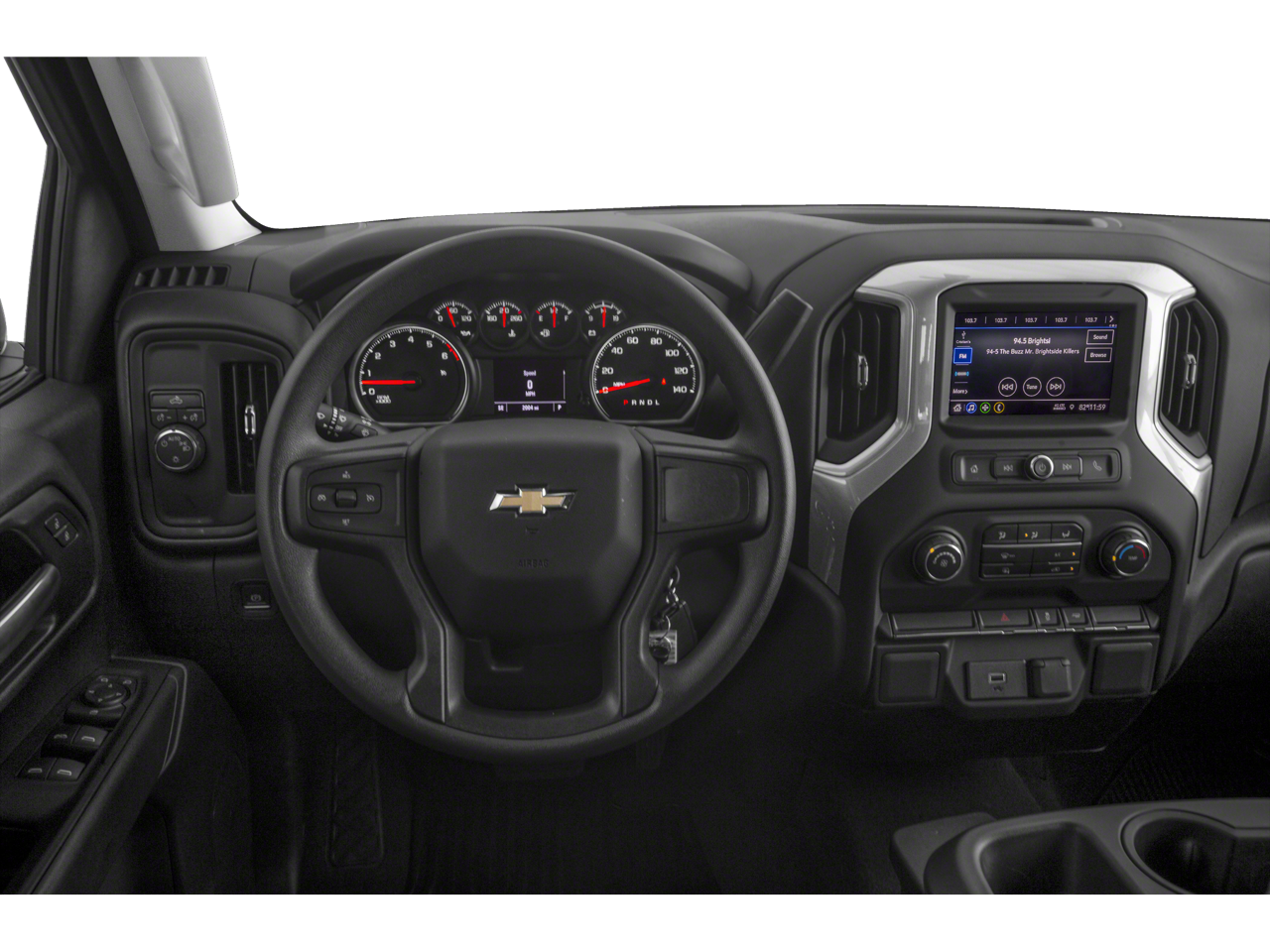 Custom Convenience Package (Electric Rear-Window Defogger, EZ Lift Power Lock & Release Tailgate, LED Cargo Area Lighting, Remote Vehicle Starter System, and Theft Deterrent System (Unauthorized Entry)), Custom Value Package, Infotainment Package (4G LTE Wi-Fi Hot Spot Capable, Chevrolet Connected Access Capable, Compass, OnStar & Chevrolet Connected Services Capable, and SiriusXM Radio), Preferred Equipment Group 1CX (170 Amps Alternator, 3.5" Diagonal Monochromatic Display, Bluetooth® For Phone, Body Color Grille, Color-Keyed Carpeting Floor Covering, Deep-Tinted Glass, Front Frame-Mounted Black Recovery Hooks, Front Rubberized Vinyl Floor Mats, Locking Tailgate, Manual Tilt-Wheel Steering Column, Power Door Locks, Power Front Windows w/Driver Express Up/Down, Power Front Windows w/Passenger Express Down, Power Rear Windows w/Express Down, Rear 60/40 Folding Bench Seat (Folds Up), Rear Rubberized-Vinyl Floor Mats, Remote Keyless Entry, and Steering Wheel Mounted Electronic Cruise Control), Trailering Package (Hitch Guidance), 120-Volt Bed Mounted Power Outlet, 120-Volt Instrument Panel Power Outlet, 220 Amps Alternator, 3.42 Rear Axle Ratio, 4-Wheel Disc Brakes, 40/20/40 Front Split Bench Seat, 6 Speakers, ABS brakes, Air Conditioning, Alloy wheels, Apple CarPlay/Android Auto, Automatic Stop/Start, Brake assist, Bumpers: body-color, Cloth Seat Trim, Delay-off headlights, Driver door bin, Driver vanity mirror, Dual front impact airbags, Dual front side impact airbags, Electronic Stability Control, Exterior Parking Camera Rear, Front 40/20/40 Split-Bench Seat, Front anti-roll bar, Front Center Armrest, Front reading lights, Front wheel independent suspension, Fully automatic headlights, Heated door mirrors, Heavy Duty Suspension, Illuminated entry, Low tire pressure warning, Occupant sensing airbag, Outside temperature display, Overhead airbag, Overhead console, Panic alarm, Passenger door bin, Passenger vanity mirror, Polished Exhaust Tip, Power door mirrors, Power steering, Power windows, Radio data system, Radio: Chevrolet Infotainment 3 System, Rear reading lights, Rear step bumper, Remote keyless entry, Single-Zone Manual/Semi-Automatic Air Conditioning, Speed control, Speed-sensing steering, Split folding rear seat, Tachometer, Tilt steering wheel, Traction control, Trip computer, Variably intermittent wipers, Voltmeter, Wheel Locks (Set of 4) (LPO), and Wheels: 20" x 9" Bright Silver Painted Aluminum.