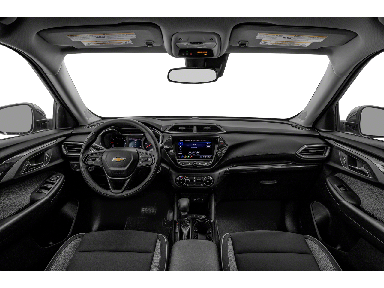 Confidence II Package (Rear Park Assist), Convenience Package (1 Type-A & 1 Type-C USB Charging-Only Ports, 120-Volt Power Outlet, 8" Diagonal Color Touchscreen Display, Cabin Humidity Sensor, Driver & Front Passenger Illuminated Vanity Mirrors, Inside Rear-View Auto-Dimming Mirror, and Single-Zone Auto Climate Control Air Conditioning), Preferred Equipment Group 1LT, 2-Way Power Driver Lumbar Seat Adjuster, 4-Way Manual Front Passenger Seat Adjuster, 4-Wheel Disc Brakes, 5.45 Axle Ratio, 6 Speakers, 6-Speaker Audio System Feature, 8-Way Power Driver Seat Adjuster, ABS brakes, Air Conditioning, Alloy wheels, AM/FM radio: SiriusXM, Auto High-beam Headlights, Brake assist, Bumpers: body-color, Cloth Seat Trim, Compass, Delay-off headlights, Driver door bin, Driver vanity mirror, Dual front impact airbags, Dual front side impact airbags, Electronic Stability Control, Emergency communication system: OnStar and Chevrolet connected services capable, Exterior Parking Camera Rear, Flat-Folding Front Passenger Seatback, Front anti-roll bar, Front Bucket Seats, Front Center Armrest, Front fog lights, Front License Plate Bracket, Front reading lights, Front wheel independent suspension, Fully automatic headlights, Heated door mirrors, Heated Driver & Front Passenger Seats, Heated front seats, Illuminated entry, Knee airbag, Low tire pressure warning, Occupant sensing airbag, Overhead airbag, Overhead console, Panic alarm, Passenger door bin, Passenger vanity mirror, Power door mirrors, Power driver seat, Power steering, Power windows, Radio data system, Radio: Chevrolet Infotainment 3 System, Rear side impact airbag, Rear window defroster, Rear window wiper, Reinforced Electric Heater/Defroster System, Remote keyless entry, Ride & Handling Suspension, Roof rack: rails only, Security system, SiriusXM Radio, Speed control, Split folding rear seat, Spoiler, Steering wheel mounted audio controls, Tachometer, Telescoping steering wheel, Tilt steering wheel, Traction control, Trip computer, Variably intermittent wipers, Wheels: 17" High Gloss Black Machined Aluminum, and Wireless Apple CarPlay/Android Auto