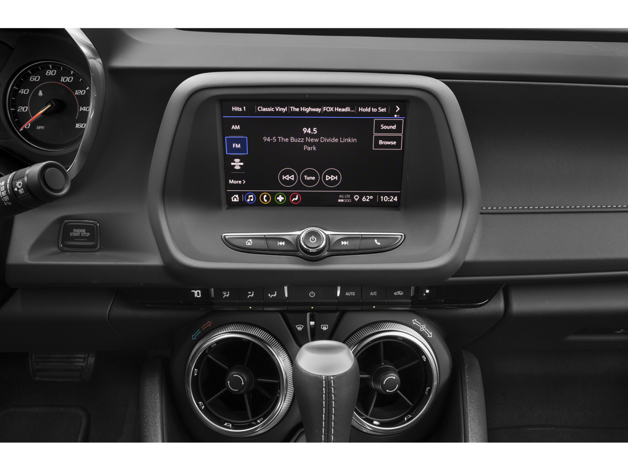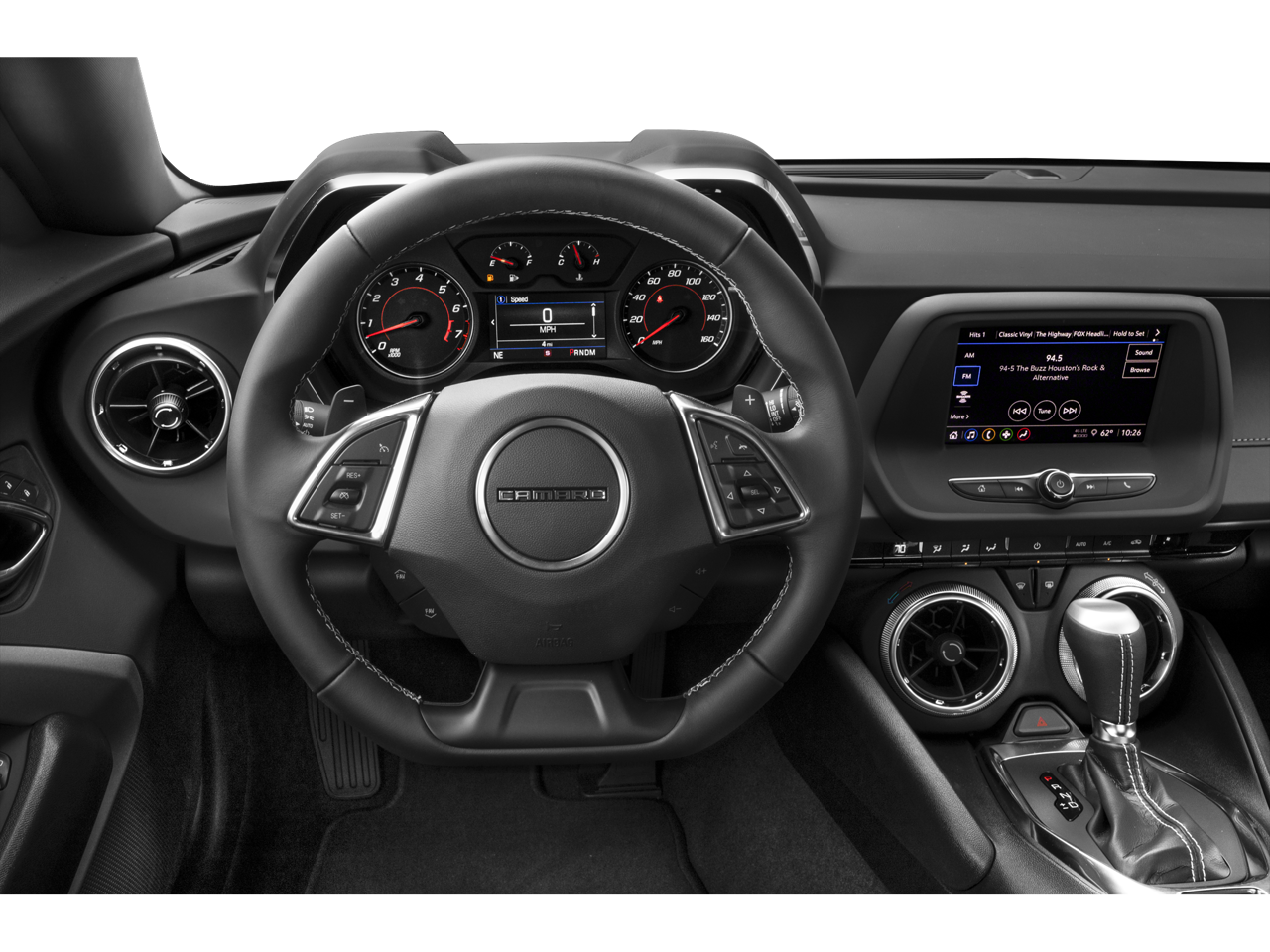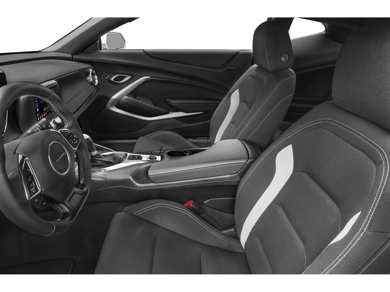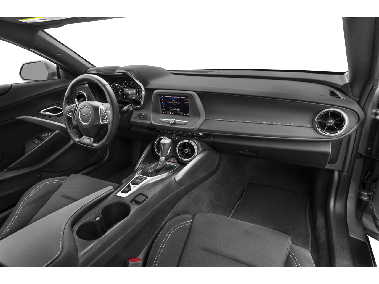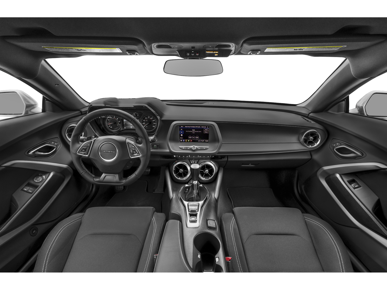 4-Wheel Disc Brakes, 6 Speakers, 6-Speaker Audio System Feature, 8-Way Power Driver Seat Adjuster, ABS brakes, Air Conditioning, Alloy wheels, Apple CarPlay/Android Auto, Automatic temperature control, Bluetooth® For Phone, Brake assist, Bumpers: body-color, Cloth Seat Trim, Compass, Decklid-Mounted Lip Spoiler, Delay-off headlights, Driver door bin, Driver vanity mirror, Dual front impact airbags, Dual front side impact airbags, Electronic Stability Control, Exterior Parking Camera Rear, Four wheel independent suspension, Front anti-roll bar, Front Bucket Seats, Front Center Armrest, Front License Plate Bracket, Front reading lights, Front Sport Bucket Seats, Fully automatic headlights, Illuminated entry, Knee airbag, Leather Shift Knob, Low tire pressure warning, Occupant sensing airbag, Overhead airbag, Paddle-Shift Manual Controls, Panic alarm, Passenger door bin, Passenger vanity mirror, Power door mirrors, Power driver seat, Power passenger seat, Power steering, Power windows, Premium audio system: Chevrolet Infotainment System, Radio data system, Radio: Chevrolet Infotainment 3 System, Rear anti-roll bar, Rear window defroster, Remote keyless entry, Remote Vehicle Starter System, Security system, Speed control, Speed-sensing steering, Steering wheel mounted audio controls, Tachometer, Telescoping steering wheel, Tilt steering wheel, Tire Inflation Kit, Traction control, Trip computer, Variably intermittent wipers, and Voltmeter.