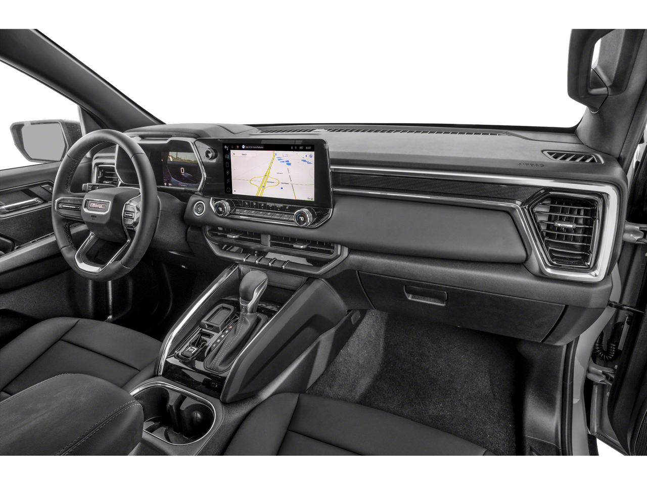 Convenience Package (120-Volt Bed Mounted Power Outlet, 2 Rear USB Ports in Center Console (Charge-Only), Driver & Front Passenger Illuminated Visors, Dual-Zone Automatic Air Conditioning, EZ-Lift & Lower Tailgate, Front LED Fog Lamps, Heated Power-Adjustable Outside Mirrors, Inside Rear-View Auto-Dimming Mirror, Interior Overhead Courtesy Light w/Dual Reading Lamp, Manual Rear-Sliding Window, MultiStow Tailgate, Rear of Console 120-Volt Power Outlet, Rear-Window Electric Defogger, Remote Vehicle Starter System, Tailgate Keyed Cylinder Lock, and Tilt & Telescopic Manual Steering Column), Preferred Equipment Group 4VL (Automatic Emergency Braking, Canyon Pro Safety, Following Distance Indicator, Forward Collision Alert, Front Pedestrian & Bicyclist Braking, IntelliBeam Automatic High Beam On/Off, and Lane Keep Assist w/Lane Departure Warning), Preferred Package (8-Way Power Driver Seat Adjuster, Heated Driver & Front Passenger Seats, and Power Driver Lumbar Control Seat Adjuster), Trailering Package (Integrated Trailer Brake Controller), 1 Rear USB Ports in Center Console (Charge-Only), 2 1st Row USB Charge/Data Ports, 220 Amps Alternator, 3.42 Rear Axle Ratio, 4-Way Manual Front Passenger Seat Adjuster, 4-Wheel Disc Brakes, 6 Speakers, 6-Speaker Audio System Feature, 6-Way Manual Driver Seat Adjuster, ABS brakes, Air Conditioning, Alloy wheels, AM/FM radio: SiriusXM, Apple CarPlay/Android Auto, Auto High-beam Headlights, Automatic Stop/Start, Brake assist, Bumpers: body-color, Cloth Seat Trim, Compass, Delay-off headlights, Driver door bin, Driver Mode Selector, Driver vanity mirror, Dual front impact airbags, Dual front side impact airbags, Electronic Stability Control, Front anti-roll bar, Front Bucket Seats, Front Center Armrest, Front License Plate Kit, Front Passenger Seatback Map Pocket, Front wheel independent suspension, Illuminated entry, Low tire pressure warning, Navigation System, Occupant sensing airbag, Outside temperature display, Overhead airbag, Overhead console, Panic alarm, Passenger door bin, Passenger vanity mirror, Power door mirrors, Power steering, Power windows, Radio data system, Radio: 11.3" Diagonal Premium GMC Infotainment Sys, Rear reading lights, Rear step bumper, Remote keyless entry, Security system, SiriusXM w/360L, Speed control, Speed-sensing steering, Split folding rear seat, Spray-On Bedliner, Steering wheel mounted audio controls, Stop/Start System Disable Button Engine Control, Tachometer, Tilt steering wheel, Traction control, Trip computer, Variably intermittent wipers, Wheels: 18" x 8.5" Dark Gray Painted Aluminum, and Wireless Apple CarPlay/Wireless Android Auto.